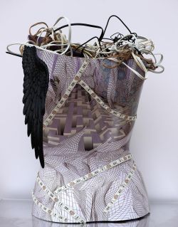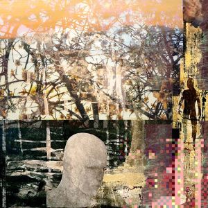 Timescapes are poetic tableaux reflecting on evolution, the passage of time and our relationship to technology. This mixed media series combine analogue and digital works, shadow boxes and “ready made” objects.