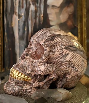 Digital Mesh Skull & Crystals on Sand